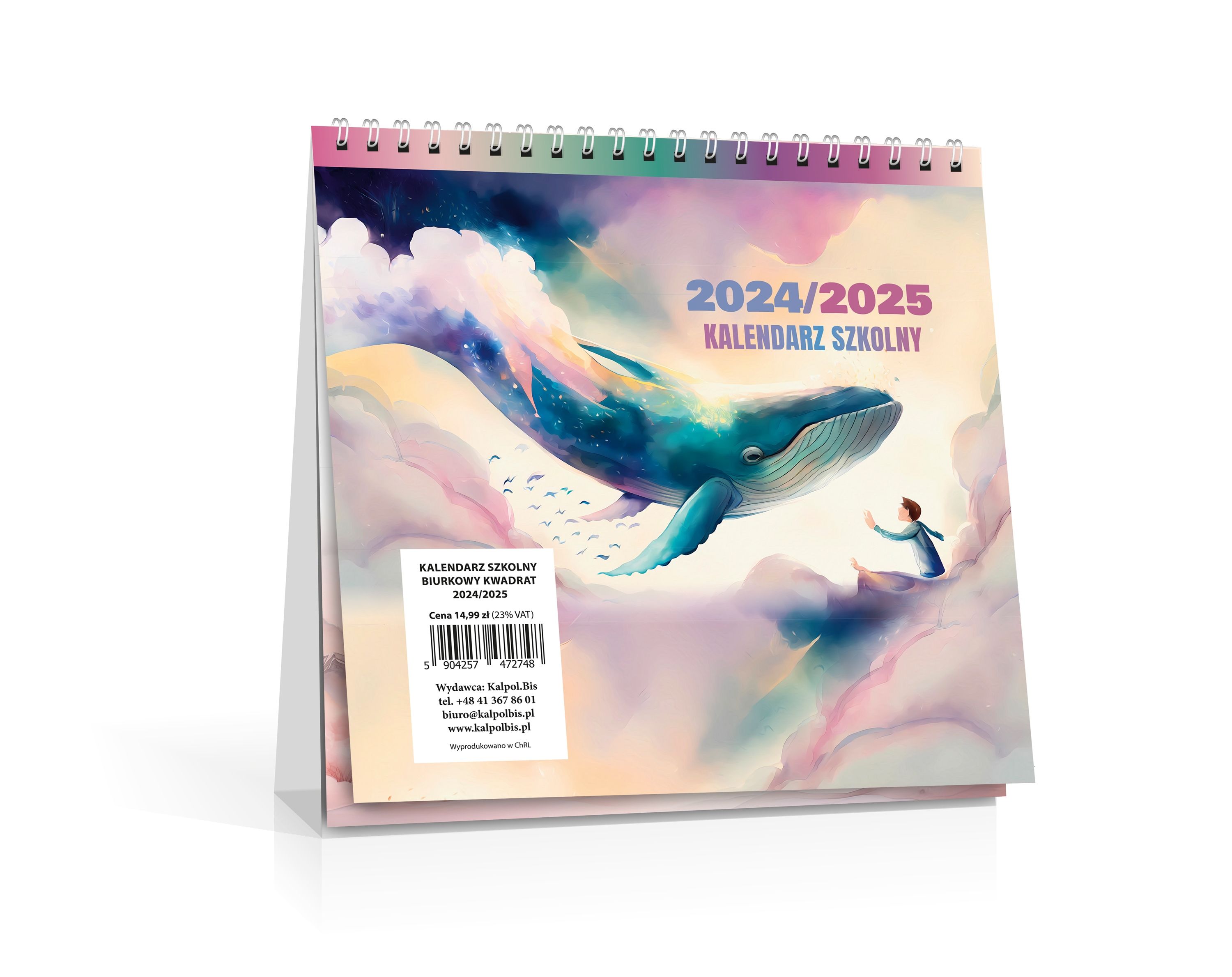 "kaledarz biurkowy typu namiot, układ kalendarium tygodniowy, kalendarium od września do sierpnia, łączenie spiralą, boku, podstawa karton 400 gsm, kalendarium offset 80g, 56 str."