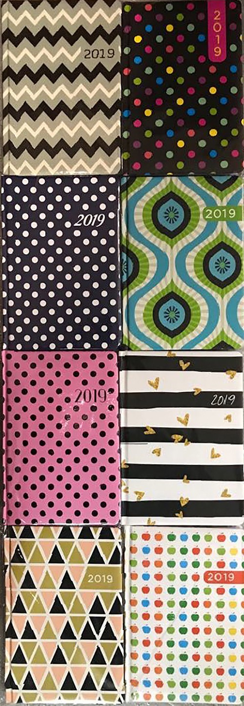 Kalendarium: 4 języczne: (PL, GB, RU, DE) Układ: dzienny, dzień na stronie Na wyklejkach: kolorowe mapy PL i EU Dodatkowe informacje: wsch i zach słońca, podwójne imieniny, święta, numeracja tygodnia, na końcu terminarza informacje: m.in. oświadczenie sprawcy kolizji drogowej, tabela przeliczników, nr. kierunkowe Mix wzorów, wzór wysyłany losowo.