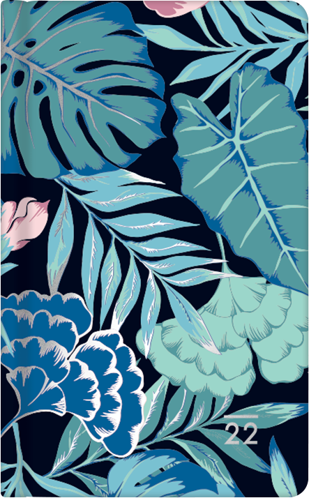 9,5 x 15,5 x 1,5 cm, układ tygodniowy, wewnątrz: plan roku 2022, notatnik, adresownik, linijka, kalendarium dodatkowe na 2023-2033