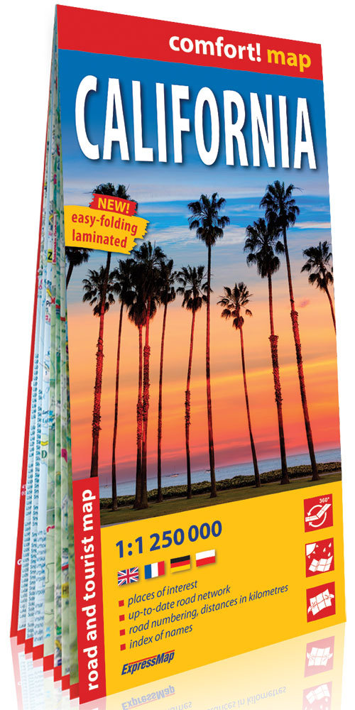 Spacer Aleją Gwiazd w Los Angeles, relaks na piaszczystych plażach Santa Monica, przejażdżka mostem Golden Gate, podróż przez pełną malowniczych winnic Napa Valley, a wizyta w niezwykłej Dolinie Śmierci? W Kalifornii czeka mnóstwo różnorodnych atrakcji. Dwustronnie laminowana, wygodna w składaniu mapa samochodowo-turystyczna tego stanu pomoże je odkryć.
