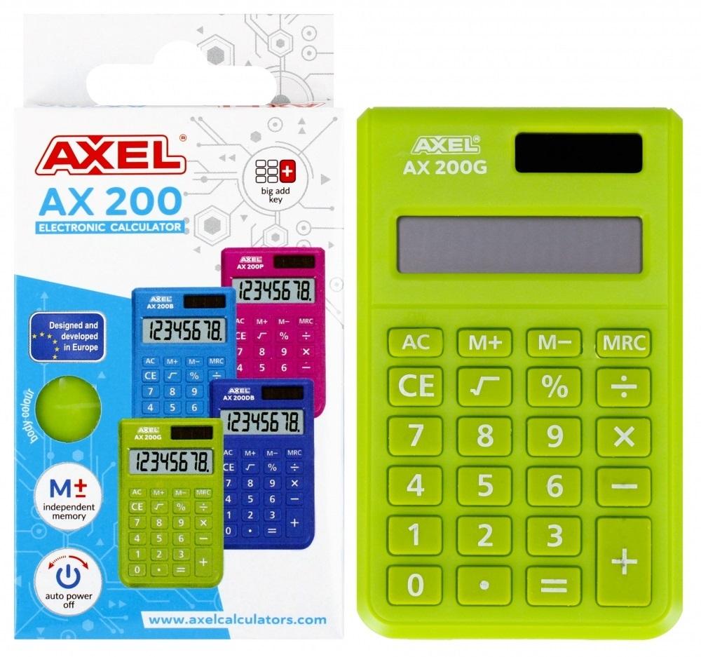 Kalkulator posiada niezależną pamięć, funkcję automatycznego wyłącznika, wyświetlacz aż do 8 cyfr. Kalkulator w zielonym kolorze. Posiada gumowe przyciski.