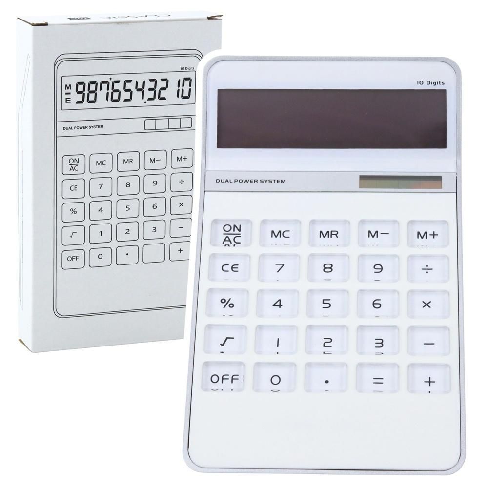 KALKULATOR BIUROWY BIAŁY - NOWOCZESNY DESIGN, PODWÓJNE ZASILANIE, 10-CYFROWY WYŚWIETLACZ Nowoczesny kalkulator biurowy w eleganckiej, białej obudowie to połączenie estetyki i funkcjonalności. Minimalistyczny wygląd i wyraźnie oznaczone przyciski sprawiają, że urządzenie doskonale prezentuje się na każdym biurku - zarówno w biurze, jak i w domu czy w przestrzeni edukacyjnej. Kalkulator wyposażony jest w 10-cyfrowy, czytelny wyświetlacz LCD oraz szeroki zestaw funkcji: podstawowe działania matematyczne, obliczenia procentowe, pierwiastkowanie, zmiana znaku, pamięć (MC, MR, M+, M), przyciski ON/AC, OFF, CE oraz kropka dziesiętna. Urządzenie działa w trybie podwójnego zasilania - na baterię oraz energię słoneczną, co zapewnia niezawodne działanie w różnych warunkach. Duże przyciski i przejrzysty układ klawiatury zapewniają wysoki komfort obsługi. Obudowa z tworzywa sztucznego jest lekka, trwała i łatwa w czyszczeniu. Dzięki kompaktowym wymiarom kalkulator mieści się bez problemu w szufladzie, torbie czy plecaku. SPECYFIKACJA: Wymiary kalkulatora: 18 x 11 x 3 cm Wymiary opakowania: 20,5 x 12 x 3,5 cm Wyświetlacz: 10-cyfrowy, ekran LCD Zasilanie: ogniwo słoneczne + bateria Funkcje: ON/AC, OFF, MC, MR, M+, M, %, , +/, CE, . Materiał: tworzywo sztuczne Kolor: biały Zastosowanie: biuro, szkoła, dom ZAWARTOŚĆ ZESTAWU: Kalkulator elektroniczny Oryginalne opakowanie