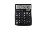 kalkulator z 8-cyfrowym wyświetlaczem podwójny system zasilania (bateria słoneczna i baterie) stały kąt nachylenia wyświetlacza wymiar: 135x108x24mm funkcja pierwiastka kwadratowego, obliczania procentów oraz podatków zasada pełnych kosztów wyposażony w klawisz zmiany znaku wyłącza się automatycznie 2 lata gwarancji kolor: czarny