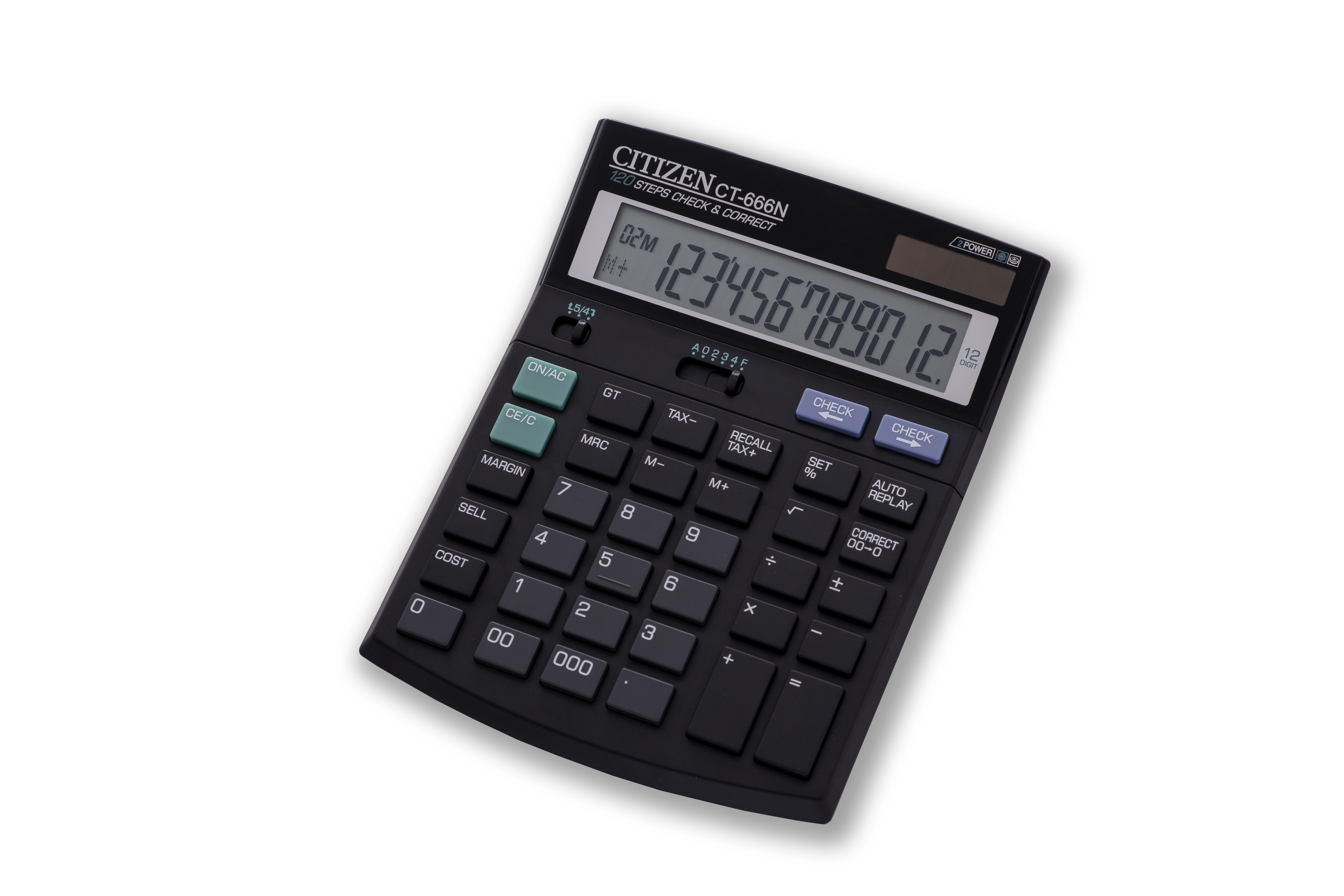 Model Citizen CT-666N to 12-pozycyjny kalkulator biurowy. Posiada wszystkie niezbędne funkcje, które usprawniają obliczenia księgowe, czy rachunkowe. Doskonale się sprawdzi również w rękach handlowca.