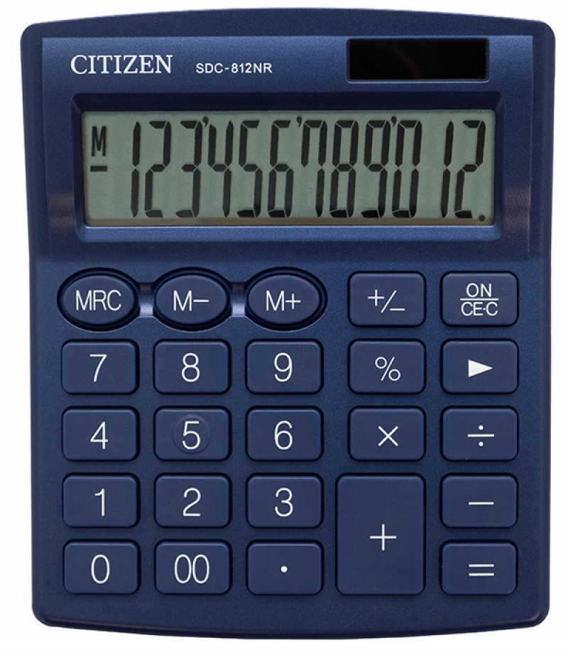 Kalkulator biurowy CITIZEN SDC-812NRNVE, 12-cyfrowy, 127x105mm, granatowy
