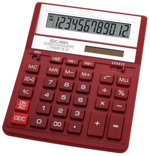 Kalkulator biurowy CITIZEN SDC-888XRD, 12-cyfrowy, 203x158mm, czerwony