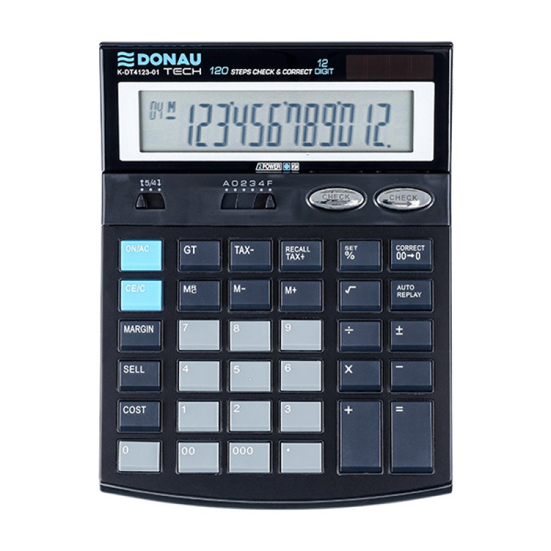 Kalkulator biurowy DONAU TECH, 12-cyfr. wyświetlacz, wym. 186x142x39 mm, czarny