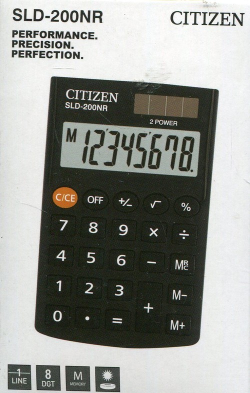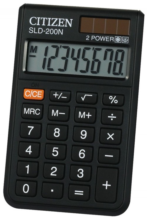 Kalkulator kieszonkowy Citizen SLD-200NR, to kalkulator kieszonkowy z baterią solarną. Posiada podstawowe funkcje liczenia, dzięki czemu jest uniwersalny i bardzo praktyczny. Doskonały dla dzieci i młodzieży do liczenia najprostszych operacji matematycznych, świetnie sprawdza się w szkole.