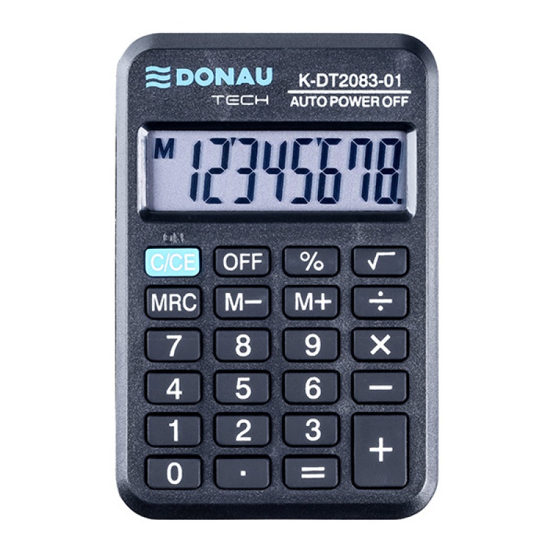 Kalkulator kieszonkowy DONAU TECH, 8-cyfr. wyświetlacz, wym. 89x59x11 mm, czarny