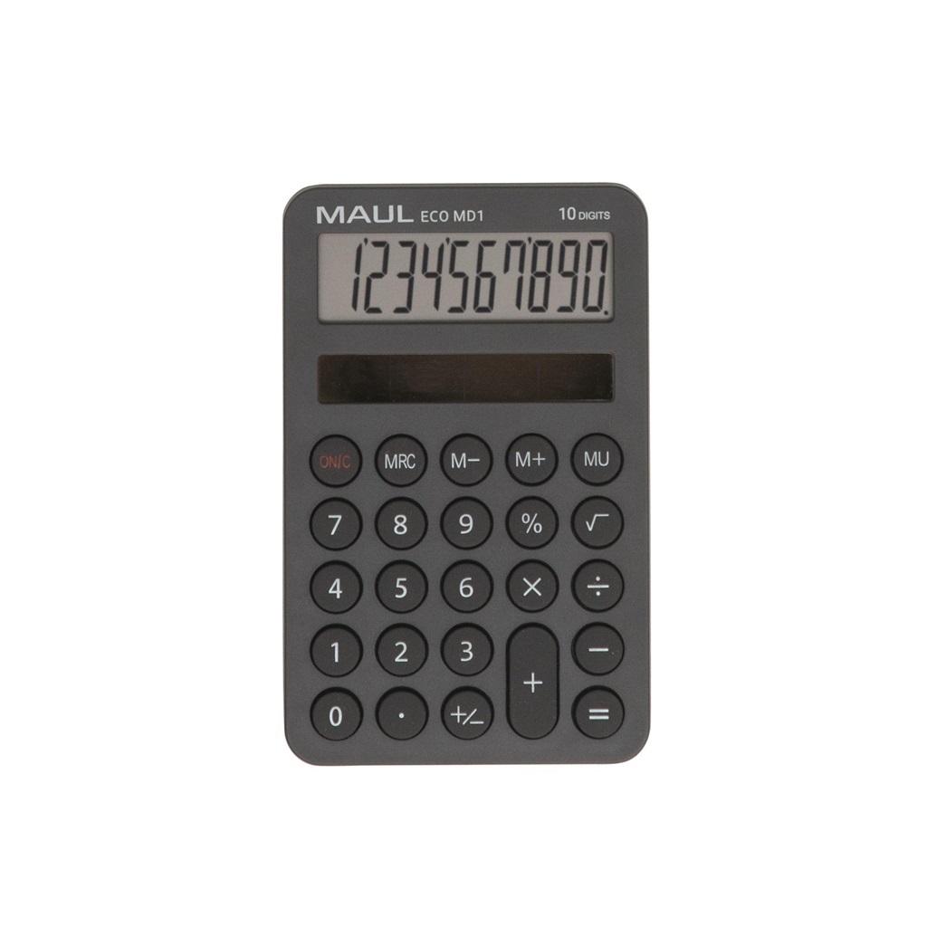 Kalkulator MAUL ECO MD1 w kolorze szarym z dużym, 10-pozycyjnym wyświetlaczem LCD. Niezawodny, dokładny i uniwersalny. Zaprojektowany zgodnie z zasadami zrównoważonego rozwoju. Zaokrąglone krawędzie sprawiają, że dobrze leży w dłoni. Z łatwymi do czyszczenia przyciskami. Zasilany energią słoneczną - brak potrzeby wymiany baterii. Wyposażony w 3 przyciski pamięci, do zmiany znaku, obliczanie pierwiastków kwadratowych i procentów. Obudowa wykonana jest w 60% z recyklingowego plastiku. Gwarancja: 5 lat. Ekologiczne opakowanie z papieru i tektury, bez użycia plastiku - można je poddać recyklingowi. Certyfikowany Blue Angel.el.