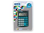 Kalkulator kieszonkowy touch z satynową matową powłoką w dotyku jak gumka. 8 pozycyjny wyświetlacz, 3 klawisze pamięci, klawisz zmiany znaku +/-, plastikowy panel, miękkie gumowe przyciski, podwójne zasilanie: bateria 1,5V oraz bateria słoneczna.