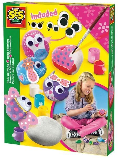 Kamyki do własnoręcznego pomalowania i ozdobienia. Dzięki oferowanemu zestawowi każde dziecko będzie mogło wykreować dowolny obrazek na kamieniu, czy doklejając oczka, uszka, skrzydełka, zamienić go w zwierzątko. Malowanie Kamieni to kreatywna zabawa pobudzająca dziecięcą wyobraźnię. Zestaw zawiera 5 kamyków, naklejki ""ruszające się oczka"", farby, klej, pędzelek.