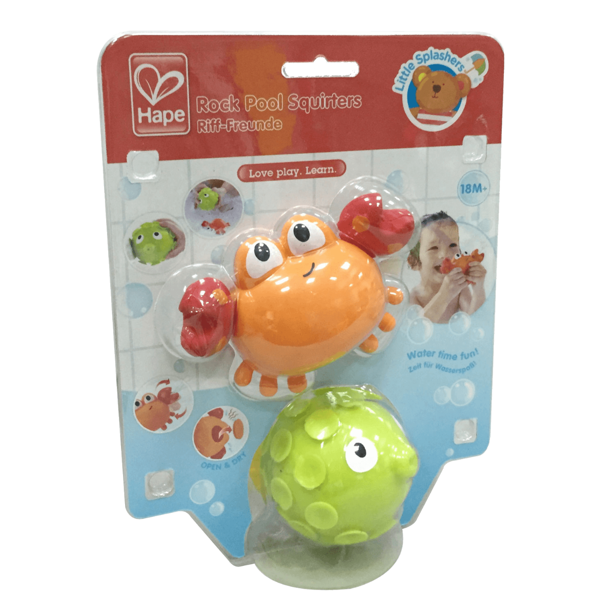 Kamienny staw Tryskające zwierzaczki to zabawka marki Hape przeznaczona do dziecięcych kąpieli. Uroczy krab oraz ryba mają zabawną tajemnicę! Jeśli napełnisz je wodą i ściśniesz, będą tą wodą tryskały.