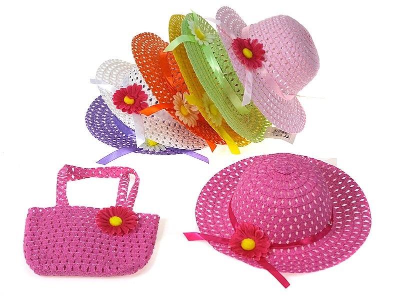 Kapelusz dziewczęcy letni z torebką mix