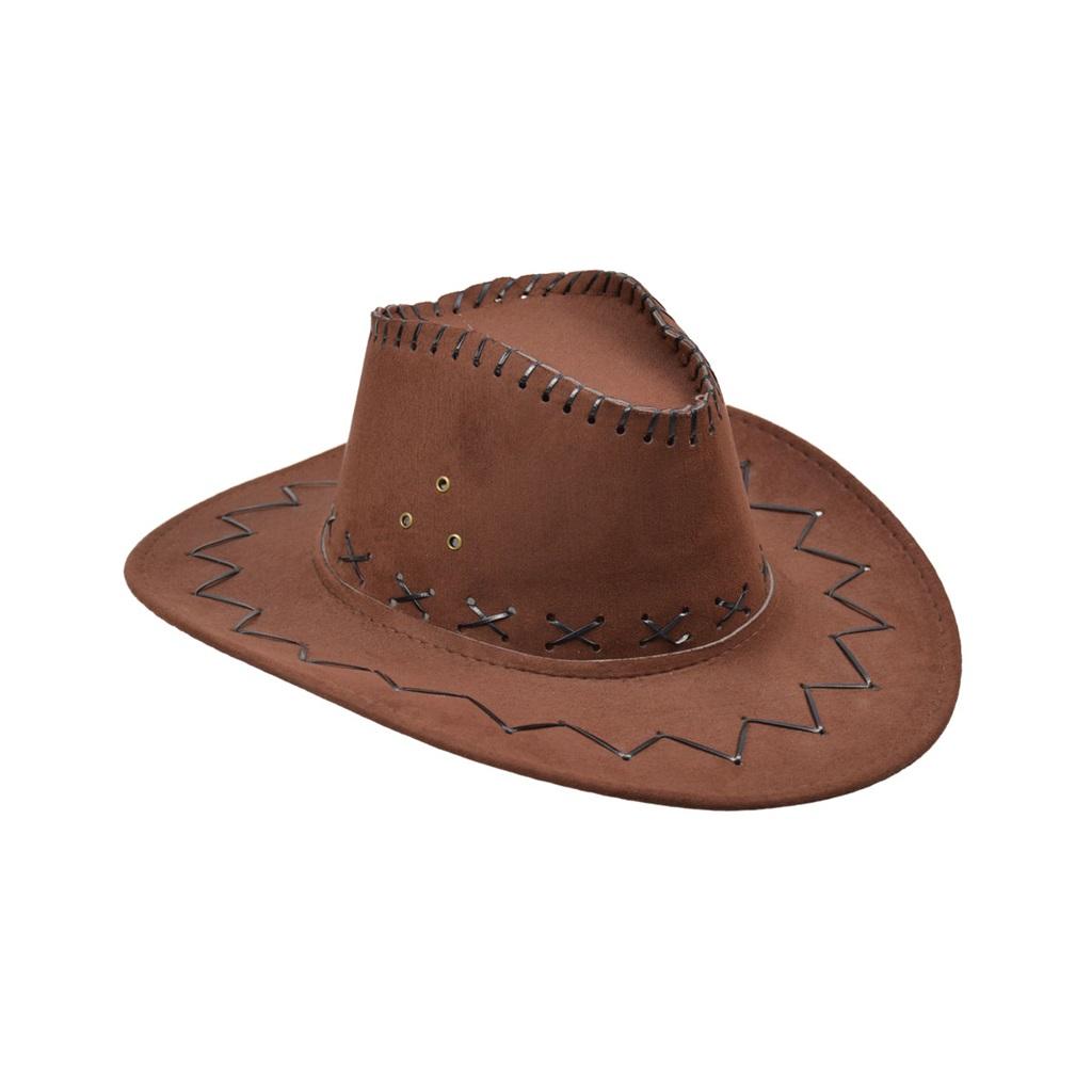 Welurowy kapelusz kowboja zdobiony czarnymi przeszyciami. Uzupełnienie stroju kowbojskiego. Rozmiar: uniwersalny. Kolor: brązowy