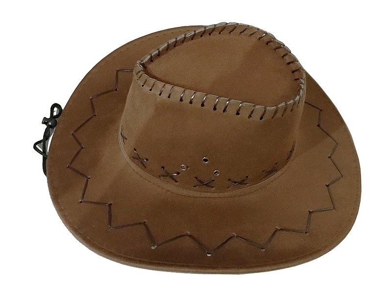 kapelusz ze sztucznego zamszu, western; 40x36x16cm, jasny brąz