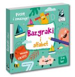 Książeczka graficzna przygotowująca do nauki pisania i czytania Bazgraki i alfabet (3–6 lat) to idealny zestaw zabaw przygotowujących do nauki liter i pisania. Atrakcyjne zadania o różnym stopniu trudności doskonalą koordynację oko-ręka, spostrzeganie wzrokowe i grafopercepcję, czyli umiejętności, dzięki którym dziecko nauczy się odróżniać litery od innych kształtów występujących w jego otoczeniu oraz samodzielnie je zapisywać. Tajemnice liter alfabetu Wraz z sympatycznymi Bazgrakami dzieci rozwiązują różnorodne i angażujące zadania graficzne, m.in. zapisują głoski, odczytują literowe szyfry oraz budują wieżę z sylabowych klocków. W ten sposób stopniowo uczą się łączyć dźwięki z ich symbolami graficznymi, rozróżniać litery oraz poprawnie je pisać. Polecenia opracowane przez Monikę Sobkowiak, nauczycielkę i neurologopedkę, zostały tak przygotowane, aby dziecko miało wrażenie, że uczestniczy w przygodach inteligentnych Bazgraków. Przykuwające wzrok ilustracje Poli Augustynowicz wprowadzają przedszkolaki w świat liter i samodzielnego tworzenia wyrazów oraz pobudzają ciekawość i wyobraźnię. Książeczka „Bazgraki i alfabet” jest przeznaczona do wielokrotnego użytku, ponieważ zamiast zwykłego papieru ma zmywalne karty. Dołączony do niej flamaster suchościeralny pozwala zmazywać odpowiedzi oraz rozwiązywać i poprawiać zadania bez końca. Rozwój nauka czytania, grafopercepcja, spostrzeganie wzrokowe, koordynacja oko–ręka Autorzy: Monika Sobkowiak – nauczycielka edukacji przedszkolnej, neurologopeda Pola Augustynowicz – ilustratorka W serii również • Bazgraki i liczby • Bazgraki w kosmosie • Bazgraki w podróży • Bazgraki w przedszkolu • Bazgraki wśród zwierząt