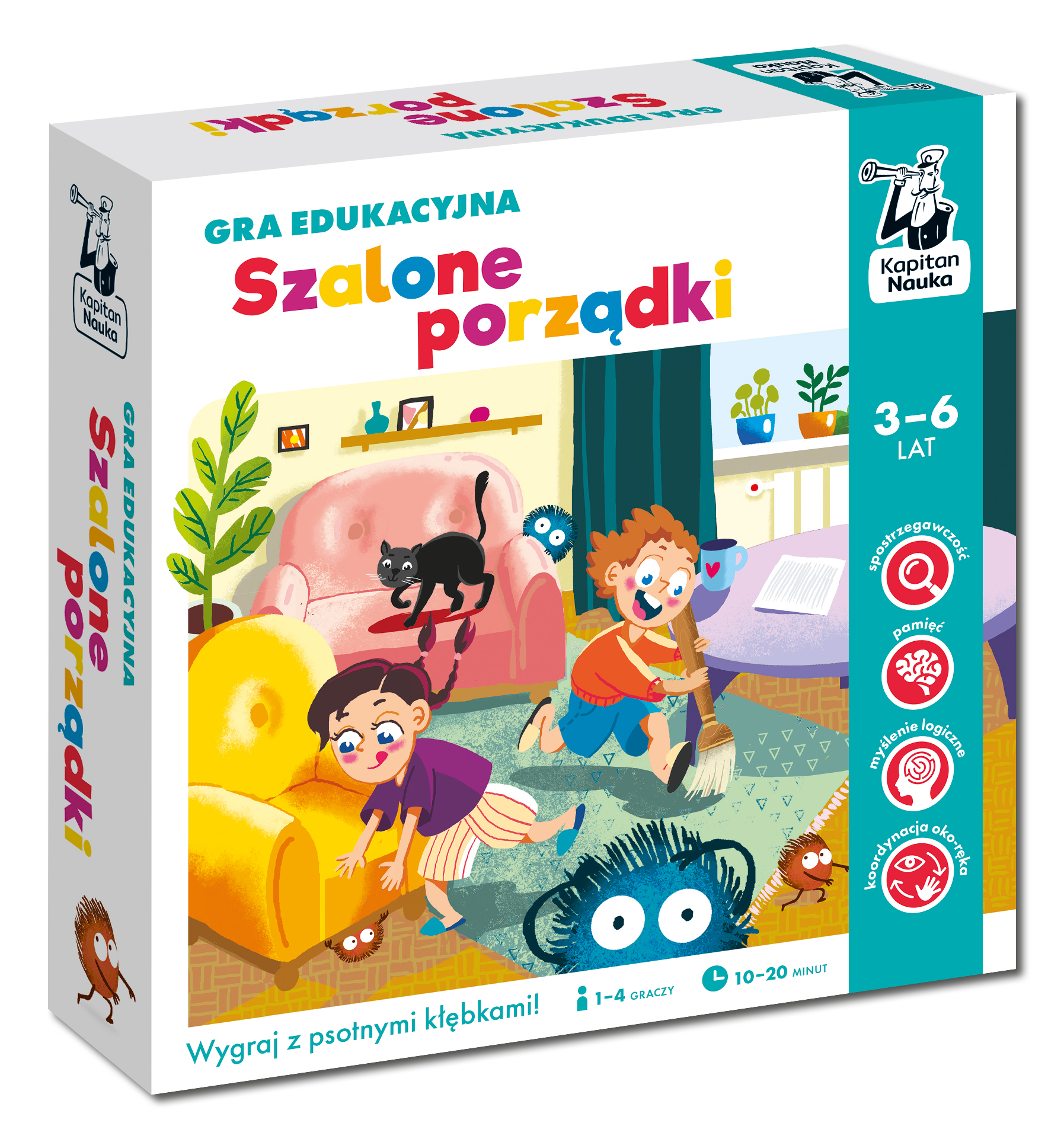 Gra edukacyjna Szalone porządki to pełna humoru zabawa, która łączy emocje i rywalizację z treningiem umiejętności segregowania i klasyfikowania przedmiotów według ich rodzaju, wielkości czy koloru.