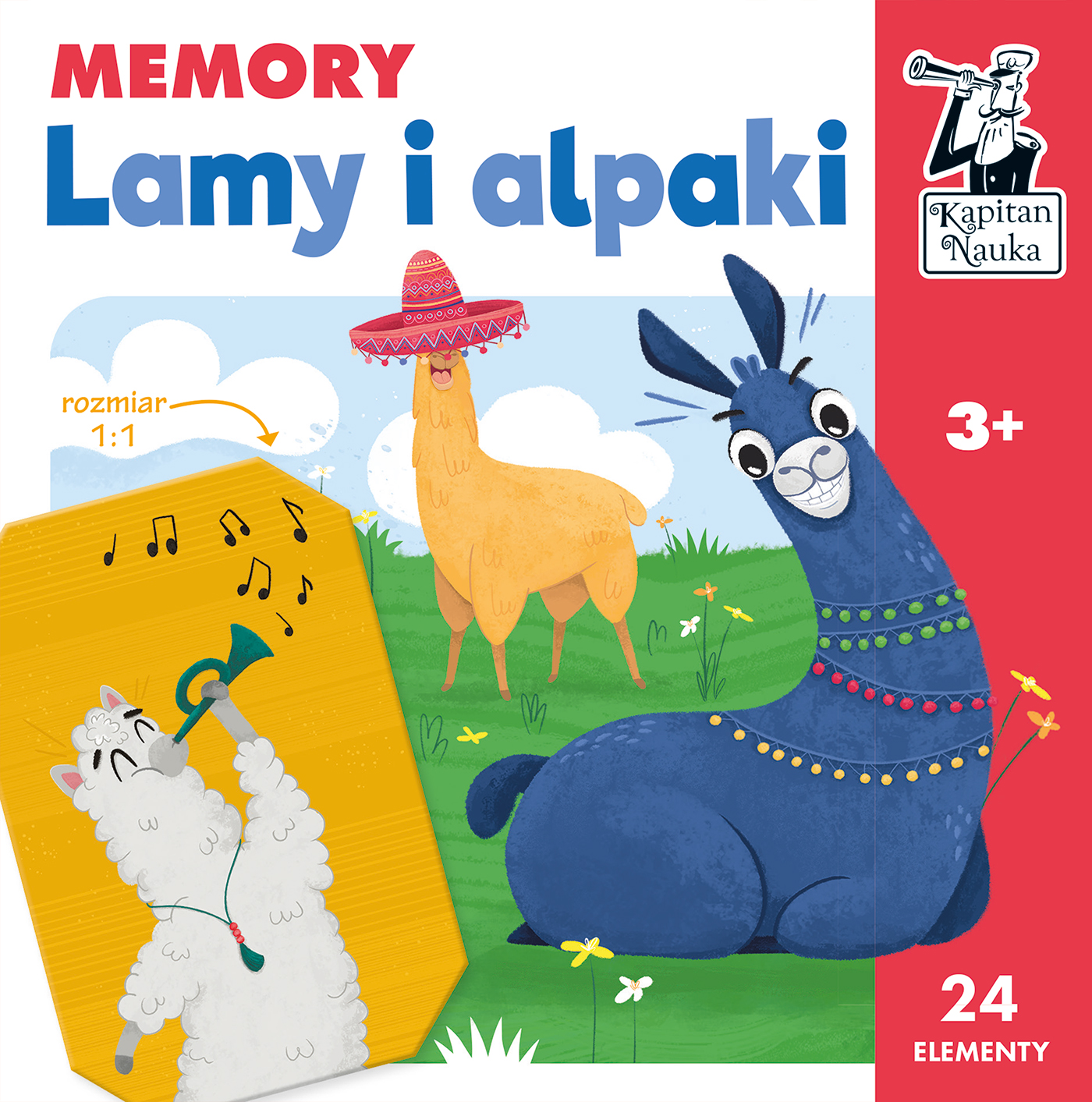 Memory Lamy i alpaki (3+) to jedna z najprostszych, a zarazem najbardziej rozwijających gier edukacyjno-rozrywkowych dla przedszkolaków i młodszych uczniów. Idealnie łączy trening pamięci z atrakcyjną tematyką. Jej bohaterami są uwielbiane przez dzieci alpaki i lamy. Te niezwykle ciekawe świata i towarzyskie zwierzęta zostały przedstawione w pełen humoru sposób, tak aby utrzymać uwagę i zainteresowanie dzieci rozgrywką, a także rozbawić je i pozwolić na swobodną pracę wyobraźni.