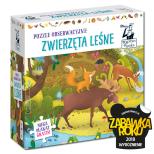 Puzzle obserwacyjne Zwierzęta leśne – zestaw 54 dużych elementów do układania dla dzieci od 4 lat – to fantastyczny sposób na pobudzanie wyobraźni, rozwijanie wrażliwości na otaczający świat i kształtowanie umiejętności konstruowania wypowiedzi na temat oglądanych ilustracji! Ramka z elementami do wyszukania na ilustracji doskonale trenuje spostrzegawczość i koncentrację dziecka. Puzzle wykonano z najwyższej jakości materiałów, a dopasowywanie dużych elementów doskonale ćwiczy małą motorykę i sprawność palców. Piękna i bajecznie kolorowa ilustracja jest pełna szczegółów, dotyczących życia zwierząt. Może być pretekstem do przybliżania dziecku wiadomości o ich obyczajach. Jednocześnie, elementy baśniowe obrazka stają się inspiracją do tworzenia niezwykłych opowieści. Puzzle wykonano w całości w Polsce, do współpracy zaproszono najlepszych polskich ilustratorów, materiały wybrano ze szczególną starannością i dbałością o bezpieczeństwo dzieci. Poręczne opakowanie znakomicie prezentuje się na półce i gwarantuje, że układanka nie zdekompletuje się w trakcie zabawy. Zestaw zawiera elementy bezpieczne już dla trzylatków. Dołączono do niego plakat XXL, który może służyć jako wzór do układania, ale i wspaniała ozdoba dziecięcego pokoju.