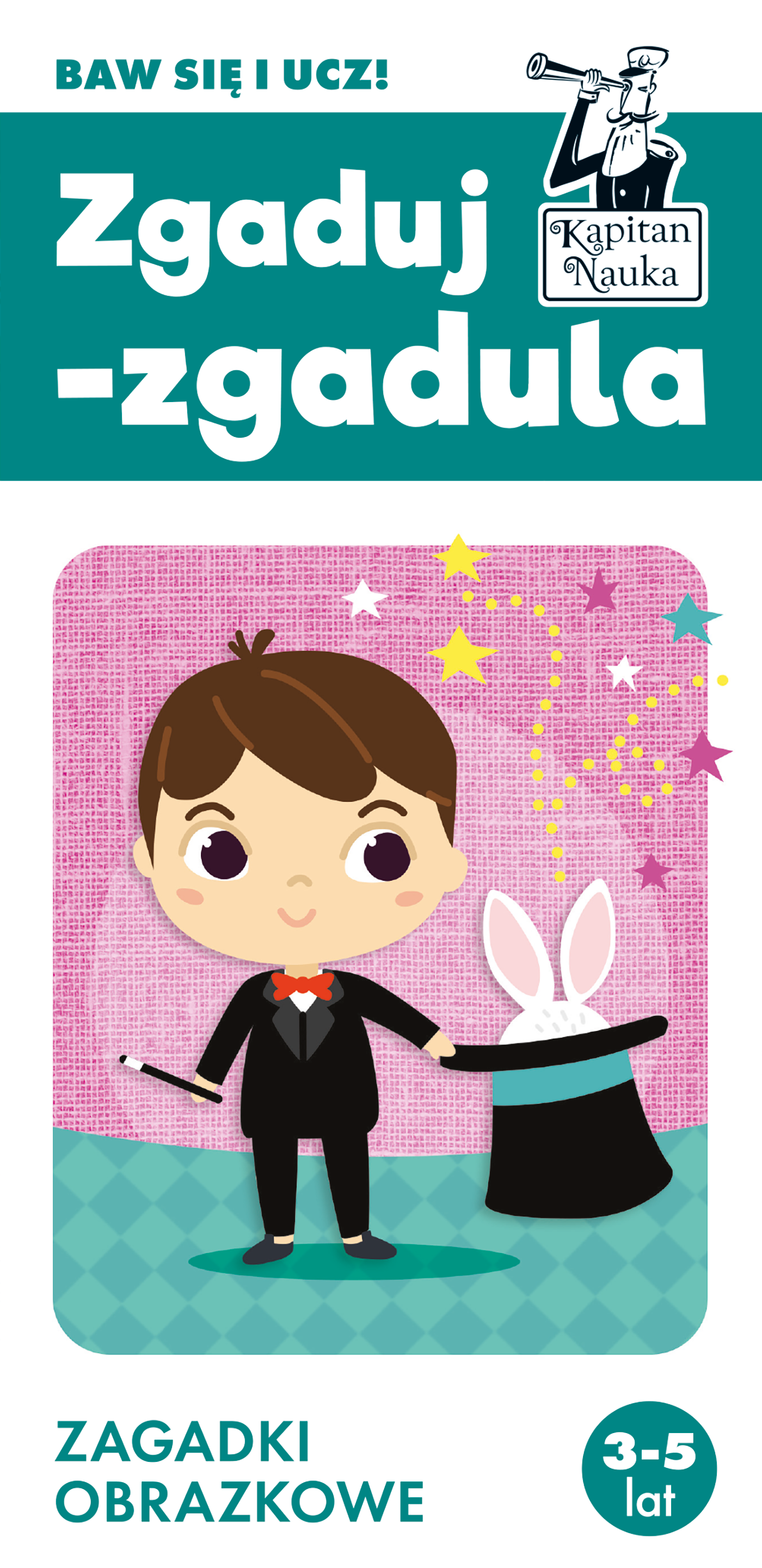Trening myślenia logicznego i spostrzegawczości Zagadki obrazkowe Zgaduj-zgadula (3–5 lat) zostały przygotowane z myślą o dzieciach w wieku przedszkolnym. Ich celem jest rozbudzanie ciekawości świata i wspieranie rozwoju intelektualnego dzieci. Łamigłówki poszerzają wiedzę ogólną, kształtują umiejętność myślenia logicznego, koncentrację na zadaniu oraz spostrzegawczość. Zagadki logiczne rozwijające myślenie i wyobraźnię Książeczka zawiera niemal 100 wciągających zabaw, takich jak odnajdywanie zależności, wyszukiwanie podobieństw i różnic, wskazywanie kolejnego elementu w ciągu czy porównywanie wielkości. Przygotowują do nauki czytania oraz matematyki. Na każdej stronie znajdują się dwa zadania, a na odwrocie – odpowiedzi do nich. Atrakcyjna tematyka związana z zainteresowaniami dzieci w wieku przedszkolnym ułatwia koncentrację na zadaniu, a angażujące uwagę dziecka i humorystyczne ilustracje Ewy Brzozowskiej doskonale uzupełniają polecenia i gwarantują mnóstwo doskonałej zabawy. Zestaw zagadek to inspirujący sposób na wspólne spędzenie wolnego czasu, a także zajmującą rozrywka podczas podróży lub pikniku w plenerze. Rozwój poznawanie świata, myślenie logiczne, spostrzegawczość, koncentracja Autorzy Monika Sobkowiak – nauczycielka wychowania przedszkolnego, neurologopeda, autorka artykułów, książek i zabaw dla dzieci. Prowadzi blog Pani Monia, inspirującego nauczycieli do innowacyjnego działania w edukacji Ewa Brzozowska – Surface Pattern Designer, grafik komputerowy i ilustrator. Z wykształcenia informatyk, z pasji – artysta. Specjalizuje się w projektowaniu wzorów dziecięcych. Prowadzi blog Freelance Mama W serii również Zagadki obrazkowe Figle-migle! 2–4 lata Zagadki obrazkowe Hip, hip, hurra 2–3 lata Zagadki obrazkowe Re, re, kum, kum 2–3 lata Zagadki obrazkowe Zgadywanki 3–5 lat Zagadki obrazkowe Łamigłówki 3–5 lat Zagadki obrazkowe Zabawy logiczne 3–5 lat Zagadki obrazkowe Angielski 3–5 lat Zagadki obrazkowe Angielski 4–6 lat Zagadki obrazkowe Angielski 5–7 lat Zagadki obrazkowe Angielski. Find and match 5–7 lat Zagadki obrazkowe Angielski 6–9 lat Zagadki obrazkowe Zabawy logiczne 6–9 lat Zagadki obrazkowe Koncentracja 6–9 lat Zagadki obrazkowe Czytanie, pamięć, koncentracja 6–9 lat Zagadki obrazkowe Matematyka 6–9 lat Zagadki obrazkowe Ortografia 6–9 lat Zagadki obrazkowe Koncentracja 6–9 lat