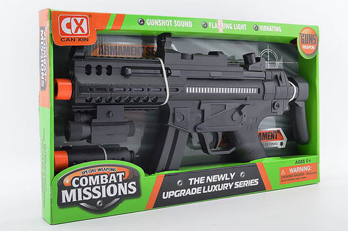 Karabin 43 cm ze światłem, dźwiękiem i wibracjami Wymagane baterie: 3 x AA LR6 1,5V - nie dołączone 3 x LR1130 - nie dołączone Zabawka dla dzieci w wieku 5+