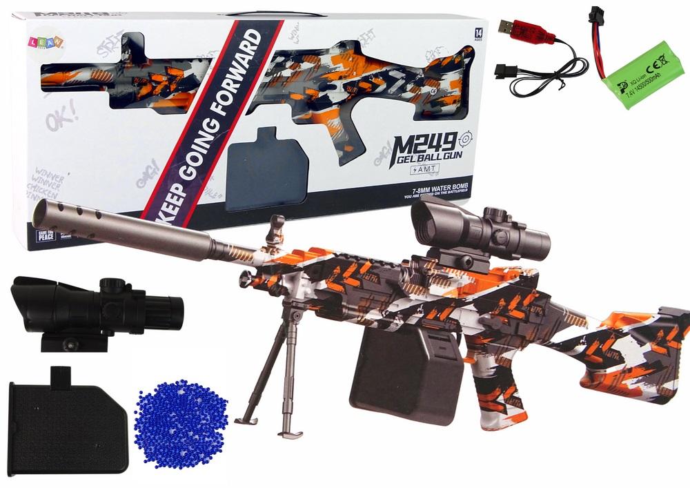 Pistolet Karabin Na Kulki Wodne Naboje Żelowe AMT Karabin AMT na kulki wodne żelowe to interaktywna zabawka, która dostarczy wiele godzin zabawy i rozrywki. Jest to model o imponującej długości całkowitej wynoszącej aż 73 cm, co nadaje mu realistyczną i imponującą estetykę. Co więcej, pistolet jest ozdobiony kolorowym wzorem pomarańczowo - czarnym z dodatkiem białego koloru, co nadaje mu atrakcyjnego wyglądu. Pistolet jest zasilany dwoma akumulatorkami, co sprawia, że jest wygodny w użytkowaniu. Dzięki zastosowaniu akumulatorów nie trzeba martwić się o częste wymienianie baterii, co pozwala na dłuższą zabawę. W zestawie znajduje się aż 5000 kulek wodnych, co gwarantuje długotrwałą zabawę. Te małe kulki stają się fascynujące, gdy wrzucimy do szklanki z wodą. Tam, w kontakcie z wodą, rozszerzają się do swojej pełnej wielkości, osiągając 7-8 mm. Zyskują one elastyczną i gumową konsystencję, idealną do zabawy. Aby utrzymać kule żelowe w gotowości do użycia, zestaw zawiera specjalny pojemnik na naboje. Dzięki nim można wygodnie przenosić i przechowywać amunicję, zapewniając, że będą one zawsze dostępne podczas zabawy. Karabin AMT jest wyposażony w statyw, który pozwala na stabilne podparcie i podtrzymywanie broni. Dzięki niemu użytkownik może lepiej określić cel, utrzymując pistolet na stałej wysokości i stabilnie podpartym. Nóżki są przydatne zarówno podczas celowania na odległość, jak i w trakcie strzelania z pozycji stojącej. Najważniejszym elementem tego zestawu jest dołączona luneta. To precyzyjne narzędzie, które umożliwia przybliżanie i regulację ostrości obrazu. Dzięki lunecie gracze mogą doskonale celować i śledzić swoje cele, dodając element strategiczny do zabawy. Luneta stanowi realistyczne uzupełnienie, które sprawia, że zabawa jest jeszcze bardziej zaangażowana i satysfakcjonująca. Pistolet AMT na kulki żelowe z kolorowym motywem i dołączoną lunetą to idealna zabawka dla miłośników militariów i fanów gier taktycznych. Zapewnia ona zarówno emocjonujące akcje, jak i umożliwia rozwijanie zdolności celowania i strategii. Ta zabawka dostarczy wiele godzin zabawy i może stać się centrum uwagi podczas zabaw na świeżym powietrzu. Zawartość zestawu : - pistolet - 5000 kulek - magazynek na kulki - 2 baterie akumulatorki - kabel USB - oryginalne pudełko - luneta - statyw Wymiary pistoletu : 73 cm x 28 cm x 7 cm Wymiary opakowania : 62 cm x 24 cm x 8 cm Pistolet zasilany jest 2 sztukami baterii, które są dołączone do zestawu. Zabawka przeznaczona jest dla dzieci powyżej 14 roku życia. Zabawka posiada certyfikat CE i jest zgodna z normą EN 71.
