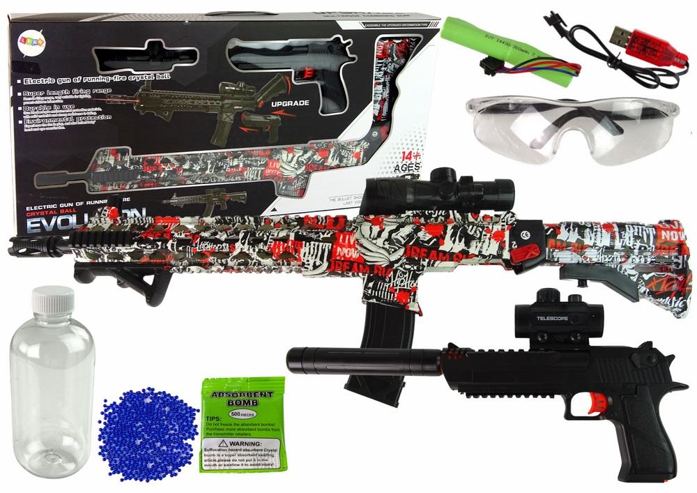 Karabin Pistolet na Kulki Wodne Akcesoria Kolorowy Ten zestaw broni zapewnia realistyczne doznania i wiele zaawansowanych funkcji, co sprawia, że stanowi fascynujący gadżet dla miłośników militariów. Zarówno karabin, jak i pistolet wyróżniają się nie tylko wyglądem, ale także rozbudowanymi możliwościami. Oba modele posiadają teleskopy, które pozwalają na dokładne oddawanie strzałów. Karabin wyposażony jest w laser, który ułatwia precyzyjne celowanie, podczas gdy pistolet wyposażony jest w tłumik, który pozwala na bardziej dyskretne strzelanie. Niezwykłą cechą tego zestawu jest możliwość korzystania z pistoletu osobno lub włożenia go do karabinu, tworząc tym samym bardziej wszechstronną broń. Karabin jest zasilany akumulatorowo, co zapewnia długotrwałe użytkowanie. W zestawie znajdują się również okulary ochronne, które zapewniają bezpieczeństwo podczas strzelania. Dodatkowo, znajdziesz w nim także kulki oraz pojemniczek na nie, co sprawia, że masz wszystko, czego potrzebujesz, aby cieszyć się realistycznymi doświadczeniami. Całość została wykonana z trwałego plastiku, co gwarantuje ich długotrwałość. Wymiary pistoletu wynoszą: 40 cm x 19 cm x 3 cm, natomiast karabinu: 79 cm x 29 cm x 5 cm. Ten zestaw stanowi nie tylko fascynujący gadżet, ale także doskonałą propozycję dla miłośników militariów, którzy chcą doświadczyć strzelania w bezpieczny i kontrolowany sposób! Elementy zestawu: - karabin - pistolet - 2 teleskopy - tłumik - laser - okulary - kulki - pojemnik na kulki - podkładka - akumulator - kabel do akumulatora Wymiary pistoletu: 40 cm x 19 cm x 3 cm Wymiary karabinu: 9 cm x 29 cm x 5 cm Wymiary opakowania: 75 cm x 35 cm x 8 cm Posiada certyfikat CE, ponadto jest zgodny z normą EN71. Zabawka przeznaczona jest dla dzieci powyżej 14 roku życia.