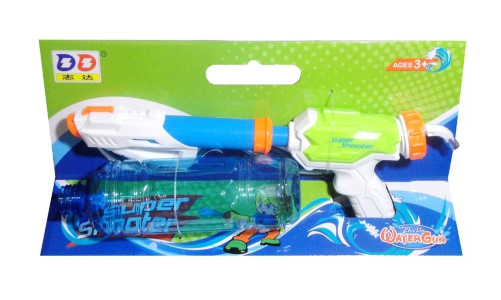 Plastikowy karabin z pojemnikiem na wodę. Zabawka dla dzieci od 3 lat. Produkt zapakowany w kartonowe opakowanie.