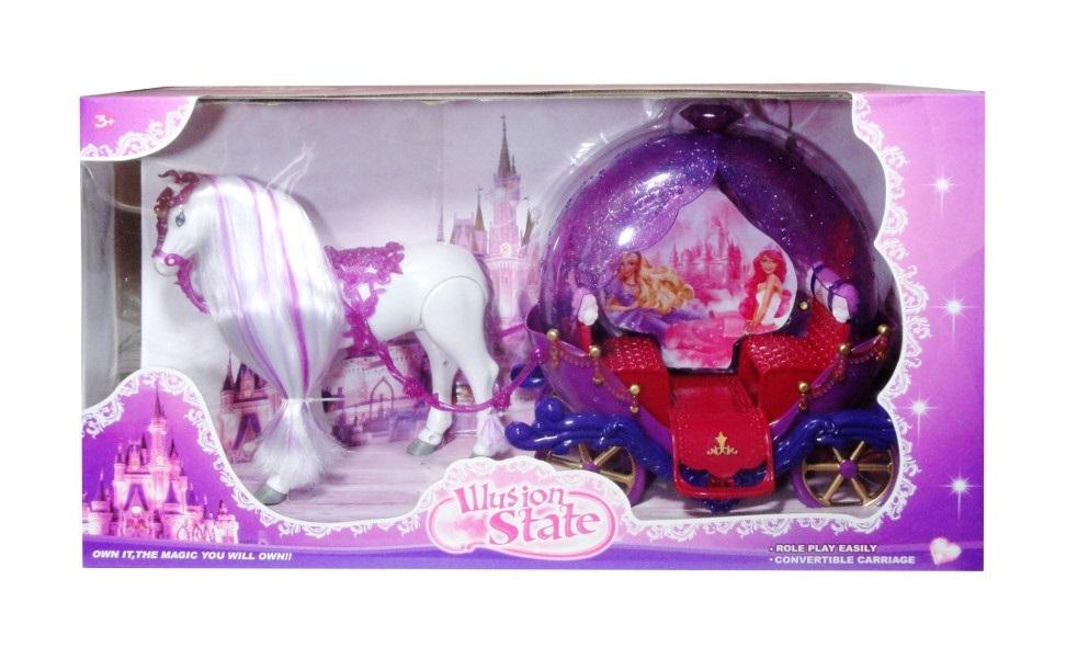 Piękny powóz z konikiem zabierze Twoją lalkę w nieznane.#&Piękny koń jest zaprzężony do powozu i zabiera lalkę w wymarzone miejsce. Konia można odczepić od powozu. #&Karetę można otworzyć od góry co ułatwi włożenie lalki do środka karety. #&#&Produkt działa na baterie typu AA. Baterie nie znajdują się w zabawce.#&Zabawka zapakowana w kartonowe opakowanie z przezroczystym okienkiem. #&Produkt dla dzieci od 3 lat. #&Podane wymiary stanowią wymiar opakowania.