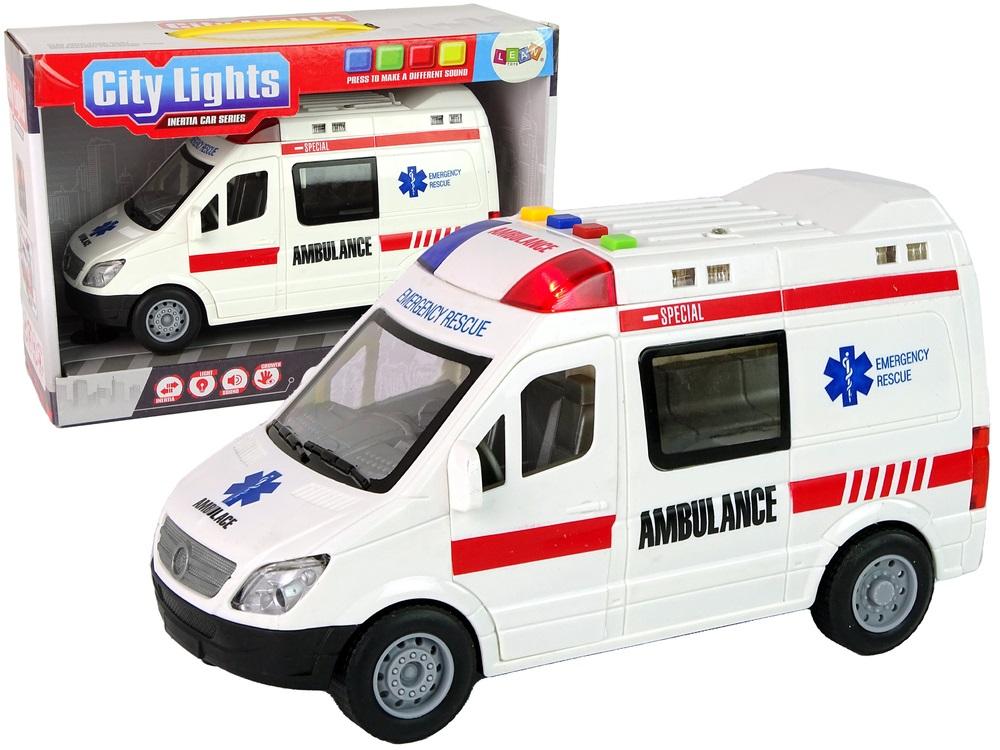 Karetka Pogotowia Światła Dźwięki Napęd Frykcyjny Urocza biała karetka z napędem frykcyjnym to fascynująca zabawka - działa na baterie i posiada 4 kolorowe przyciski, każdy uruchamiający inny dźwięk. Dzieci będą zachwycone możliwością otwierania drzwi i oglądania wnętrza pojazdu, a także włączania świateł, co dodatkowo zwiększa realizm zabawy. Karetka ma wygodne rozmiary (22 cm x 8 cm x 12 cm), idealne dla małych rączek i ciekawych dzieci, które uwielbiają wcielać się w rolę lekarza lub kierowcy karetki. Pojazd wykonany jest z wysokiej jakości plastiku, a opony są gumowe co ułatwia bezproblemowy przejazd po różnych powierzchniach. Ta interaktywna zabawka rozwija wyobraźnię i pobudza kreatywność maluchów, dając im możliwość odgrywania różnych scenariuszy i zadań. Estetyczne opakowanie o wymiarach 27 cm x 11 cm x 18 cm idealnie nadaje się na prezent i posiada uchwyt, co ułatwia transport. Daj swojemu dziecku możliwość ciekawej i pełnej emocji zabawy z tą wspaniałą karetką! To doskonały prezent dla każdego małego entuzjasty medycyny lub zafascynowanego światem pojazdów ratunkowych. Zachęcamy do zakupu tej wspaniałej zabawki, która dostarczy wiele radości i pozwoli na rozwojowe przygody w świecie służb ratunkowych! Wymiary karetki: 22 cm x 8 cm x 12 cm Wymiary opakowania: 27 cm x 11 cm x 18 cm Produkt posiada certyfikat CE i jest zgodny z normą EN71. Produkt przeznaczony dla dzieci powyżej 3. roku życia.