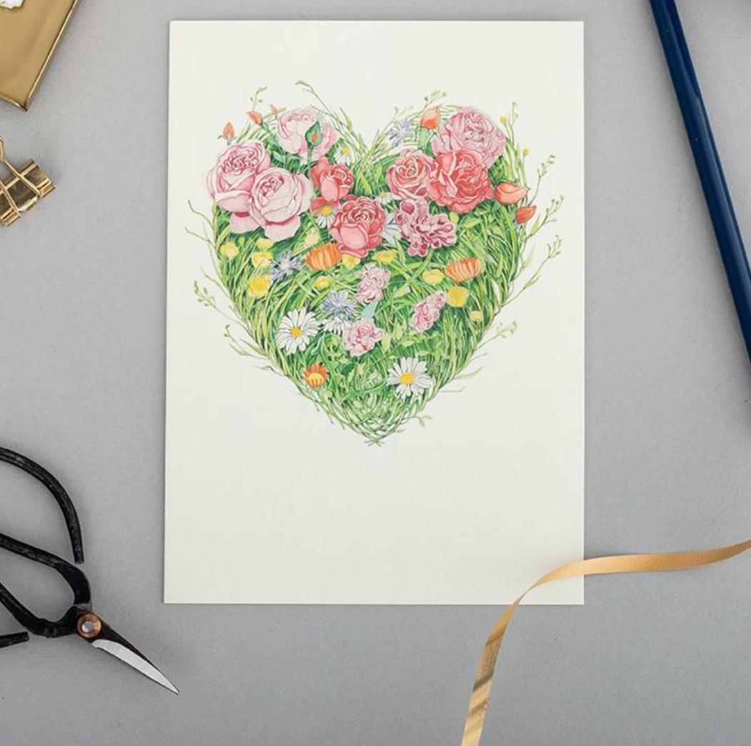 Karnet A092 B6 + koperta Serce z kwiatami