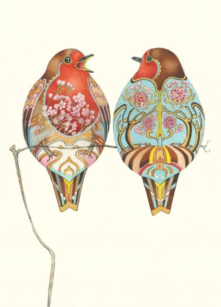 Opakowanie Karnet A115 B6 + koperta Dwa ptaki rudziki