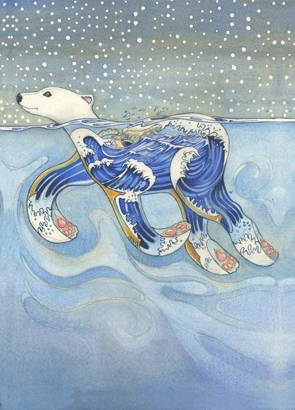 Opakowanie Karnet A119 B6 + koperta Pływający niedźwiedź pol.