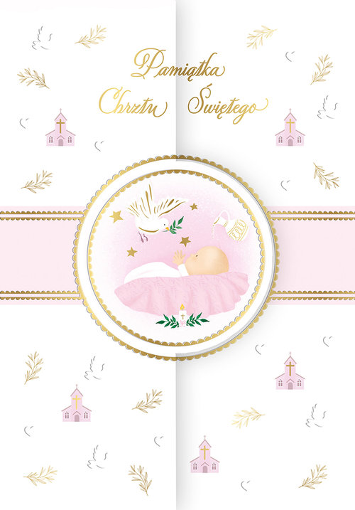 Opakowanie Karnet A5 Pamiątka Chrztu Świętego różowy
