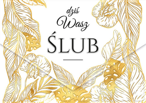 Karne w formacie A5, złocony i tłoczony, teksy życzeń w środku. Wydrukowany na wysokiej jakości papierze. W zestawie koperta.