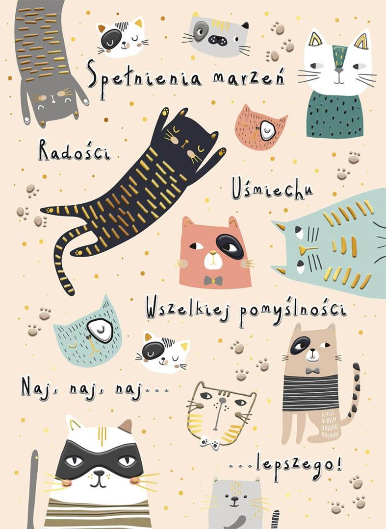 Karnet A5 Urodziny - Beżowe koty