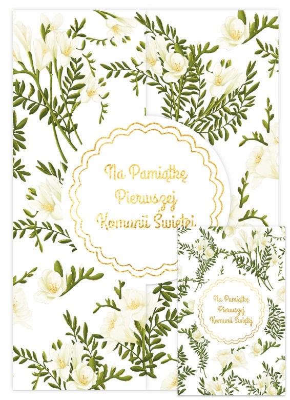 Opakowanie Karnet A5 z klapką Komunia. Frezje