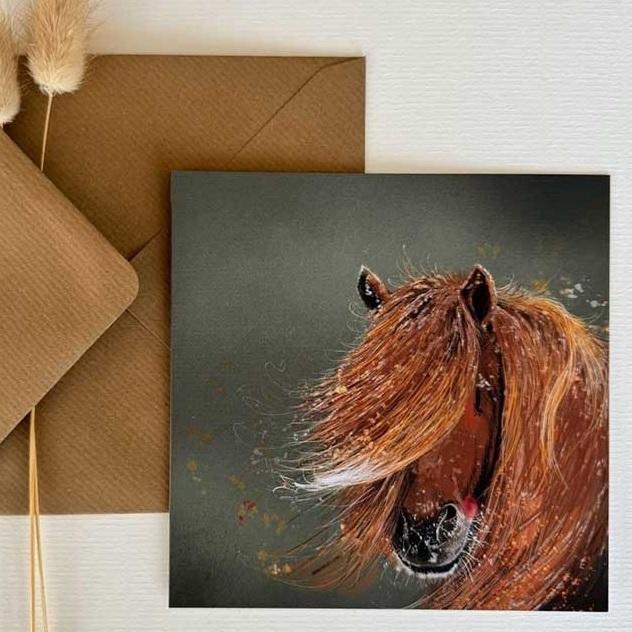 Karnet bez tekstu wewnątrz, w zestawie z brązową kraftową kopertą. Wyprodukowany w Wielkiej Brytanii.