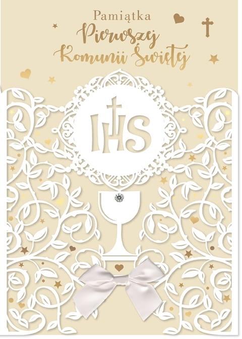 Kartki z serii QDK zawsze wyróżniają się wśród innych z powodu swojej wielkośći - nie są ogromne, ale większe od innych, a oryginalne zdobienie sprawia, że są nie tylko duże, ale także wyjątkowe. QDK to synonim wysokiej jakości wykonania, świetnych tekstów życzeń w środku i super designu. Ta kartka z życzeniami z okazji Pierwszej Komunii Świętej to wspaniały pomysł na to, aby wyrazić gratulacje w sposób, który zapadnie w pamięć. Cechy szczególne: wielkość: B5, 17,5 x 25 cm, koperta: dopasowana w zestawie, zdobienia: dekoracje ze złotej folii, koronka wycinana laserowo, elementy biżuteryjne, wnętrze kartki: kolorowe, z życzeniami, okazja: komunia, Pierwsza Komunia Święta.