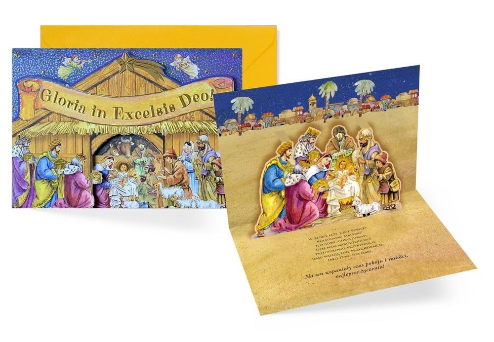 Kartka z serii Pop-Up to idealny pomysł na Boże Narodzenie Kartki wyróżniają się przestrzennym elementem wewnątrz, który uwypukla się wraz z jej otwarciem. W środku kartki znajdują się krótkie starannie dopasowane życzenia z miejscem na własną dedykację. Eleganckiego akcentu każdej kartce nadaje dołączona koperta mieniąca się perłowym blaskiem. Cechy szczególne: wielkość: 11.7 x 16.6 cm po złożeniu koperta: biała perłowa zdobienia: połyskująca folia perlista, złota folia, doklejany papierowy element okazja: Boże Narodzenie