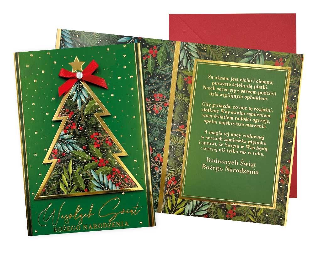 Kartka B6 z ozdobnej serii Dream Cards na Boże Narodzenie - nieduża, ale robi wrażenie dzięki atrakcyjnej kolorystyce i ciekawym zdobieniom. To idealny wybór łączący przyjazną cenę z jakością. Cechy szczególne: wielkość: B6, 16.6 x 11.7 cm po złożeniu, koperta: w zestawie, kolorowa, zdobienia: różnorodne, bogate (w zależności od wzoru: przyklejane dekoracje, elementy biżuteryjne, odstawniki, brokat metaliczne folie, tłoczenia itp.), okazja: Boże Narodzenie.