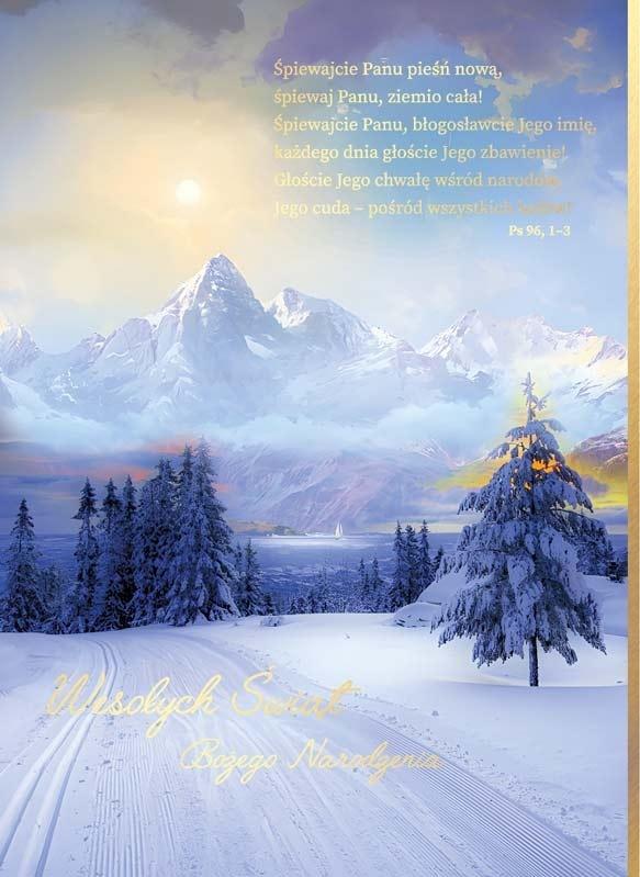 Kartka wielkości B6, zdobiona metaliczną folią. Każda kartka posiada kolorowe życzenia w środku i dopasowaną kopertę w komplecie.