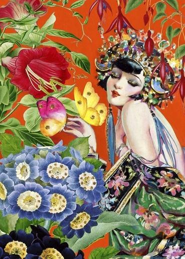 GT002 Karnet B6 brokat z kopertą Kobieta wśród kwiatów, wyprodukowany w Wielkiej Brytanii