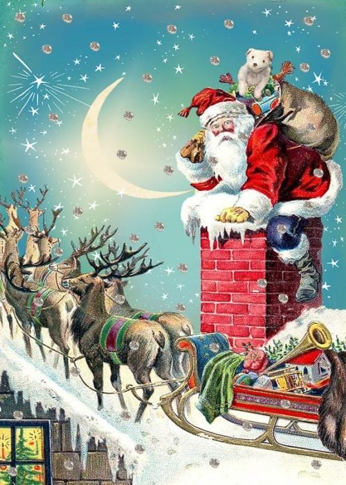 Opakowanie Karnet B6 brokat z kopertą Święta Mikołaj