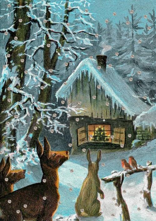 Opakowanie Karnet B6 brokat z kopertą Święta Zwierzaki