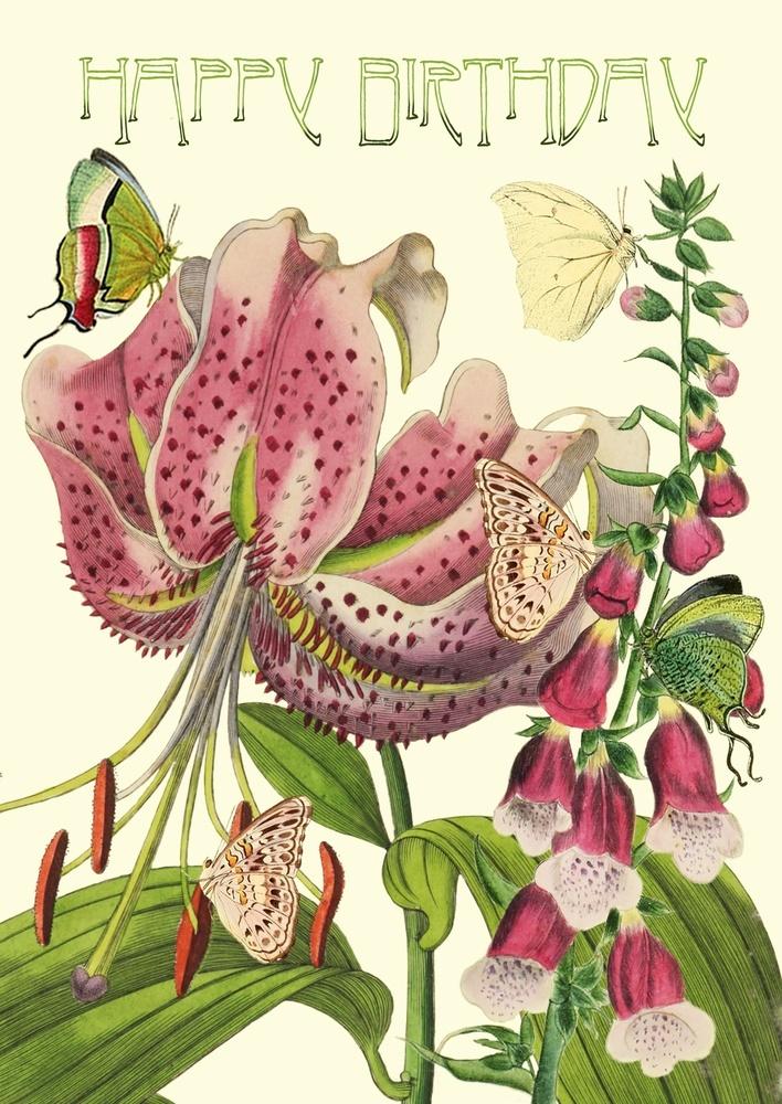HB184 Karnet B6 brokat z kopertą Urodziny Lilia, wyprodukowany w Wielkiej Brytanii