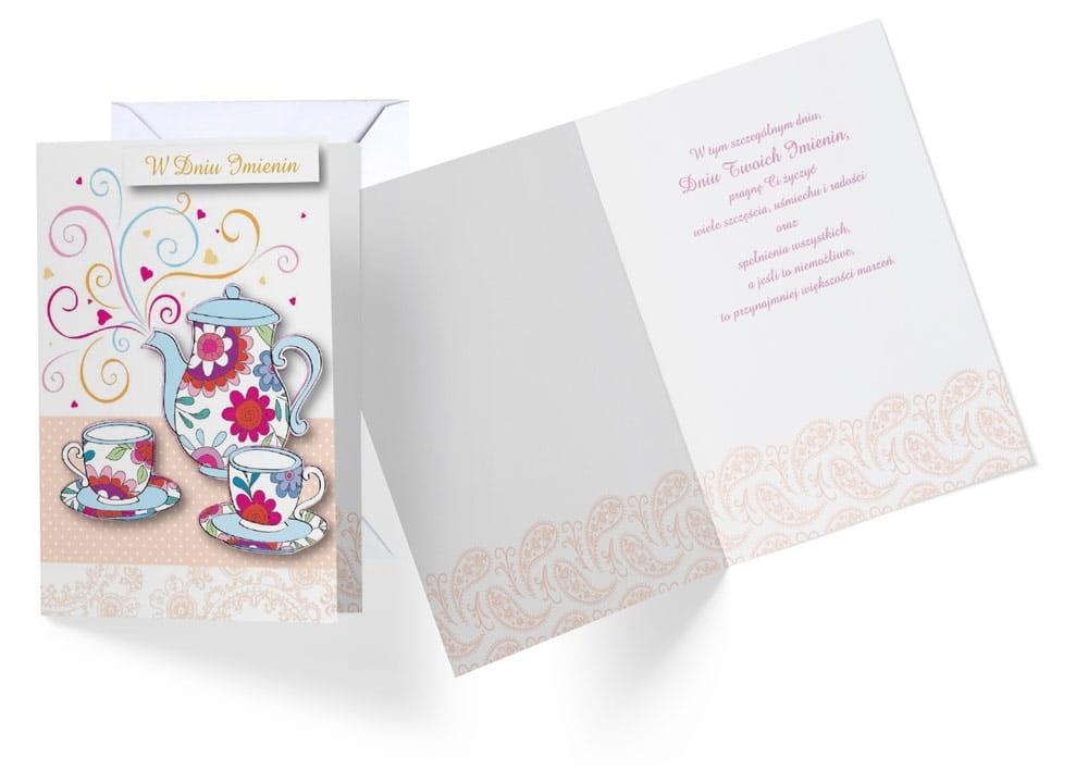 Kartka B6 z ozdobnej serii Dream Cards na imieniny - nieduża, ale robi wrażenie dzięki atrakcyjnej kolorystyce i ciekawym zdobieniom. To idealny wybór łączący przyjazną cenę z jakością. Cechy szczególne: wielkość: B6, 16.6 x 11.7 cm po złożeniu, koperta: w zestawie, kolorowa, zdobienia: różnorodne, bogate (w zależności od wzoru: przyklejane dekoracje, elementy biżuteryjne, odstawniki, brokat metaliczne folie, tłoczenia itp.).