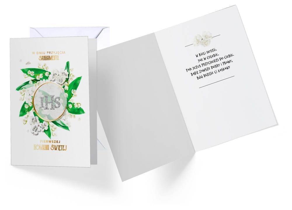 Kartka B6 z ozdobnej serii Dream Cards na Komunię - nieduża, ale robi wrażenie dzięki atrakcyjnej kolorystyce i ciekawym zdobieniom. To idealny wybór łączący przyjazną cenę z jakością. Cechy szczególne: wielkość: B6, 16.6 x 11.7 cm po złożeniu, koperta: w zestawie, kolorowa, zdobienia: różnorodne, bogate (w zależności od wzoru: przyklejane dekoracje, elementy biżuteryjne, odstawniki, brokat metaliczne folie, tłoczenia itp.), okazja: Komunia.