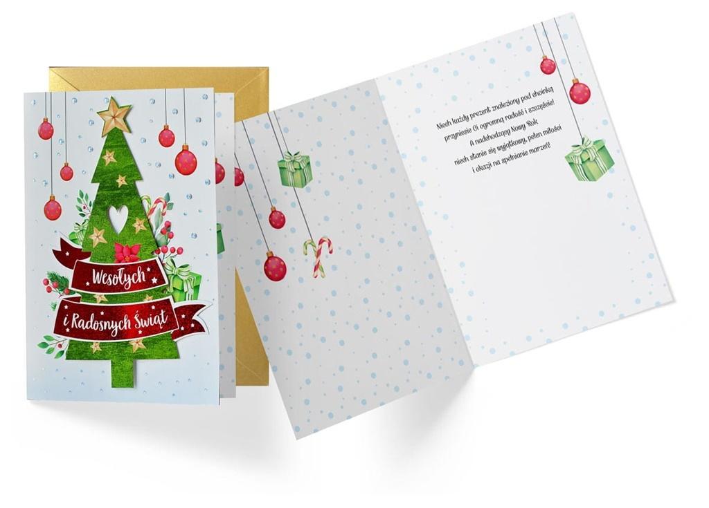 Kartka B6 z ozdobnej serii Dream Cards na Boże Narodzenie - nieduża, ale robi wrażenie dzięki atrakcyjnej kolorystyce i ciekawym zdobieniom. To idealny wybór łączący przyjazną cenę z jakością. Cechy szczególne: wielkość: B6, 16.6 x 11.7 cm po złożeniu, koperta: w zestawie, kolorowa, zdobienia: różnorodne, bogate (w zależności od wzoru: przyklejane dekoracje, elementy biżuteryjne, odstawniki, brokat metaliczne folie, tłoczenia itp.), okazja: Boże Narodzenie.